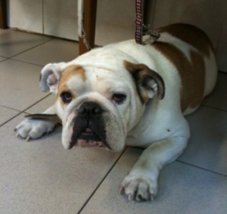 fenka angl.buldoga, cca 8 let, Osobní pejsek paní majitelky útulku Libeň (bohužel paní majitelka zemřela). Fenka byla zachráněna od lidí, kteří jí měli jako mašinu na štěňata a Bublina na to téměř doplatila životem. Nový domov našla 31.5.2011
